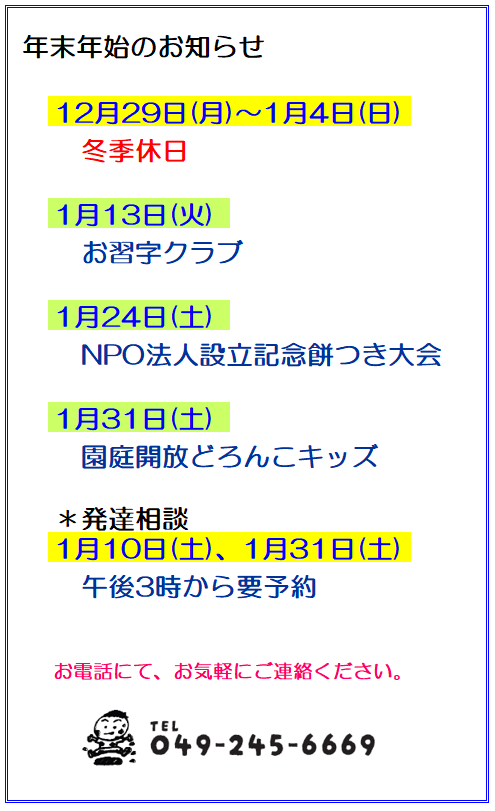 定員30名の小さい園ですが保育者と保護者が共に支え合い子どもを中心としゆったりとし風の流れる温かい園です。どうぞ一度いらして下さい。